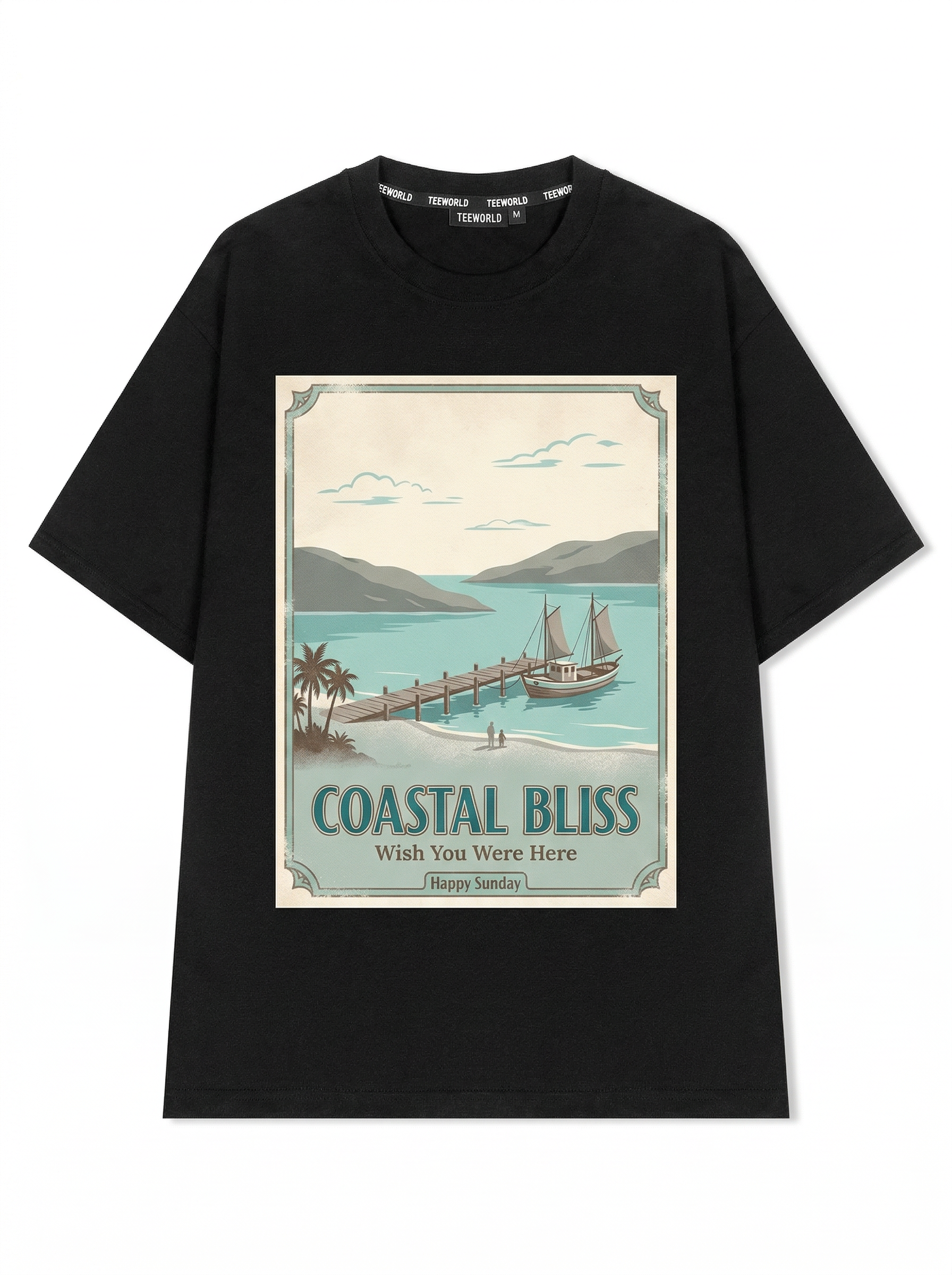 Seaside Serenity - Thiết kế độc quyền từ Happy Sunday. Chất liệu: Cotton Premium 250gsm, form oversize thoải mái. In ấn: Công nghệ in sắc nét, bền màu sau nhiều lần giặt. Phong cách: Đồ họa nghệ thuật, nổi bật.