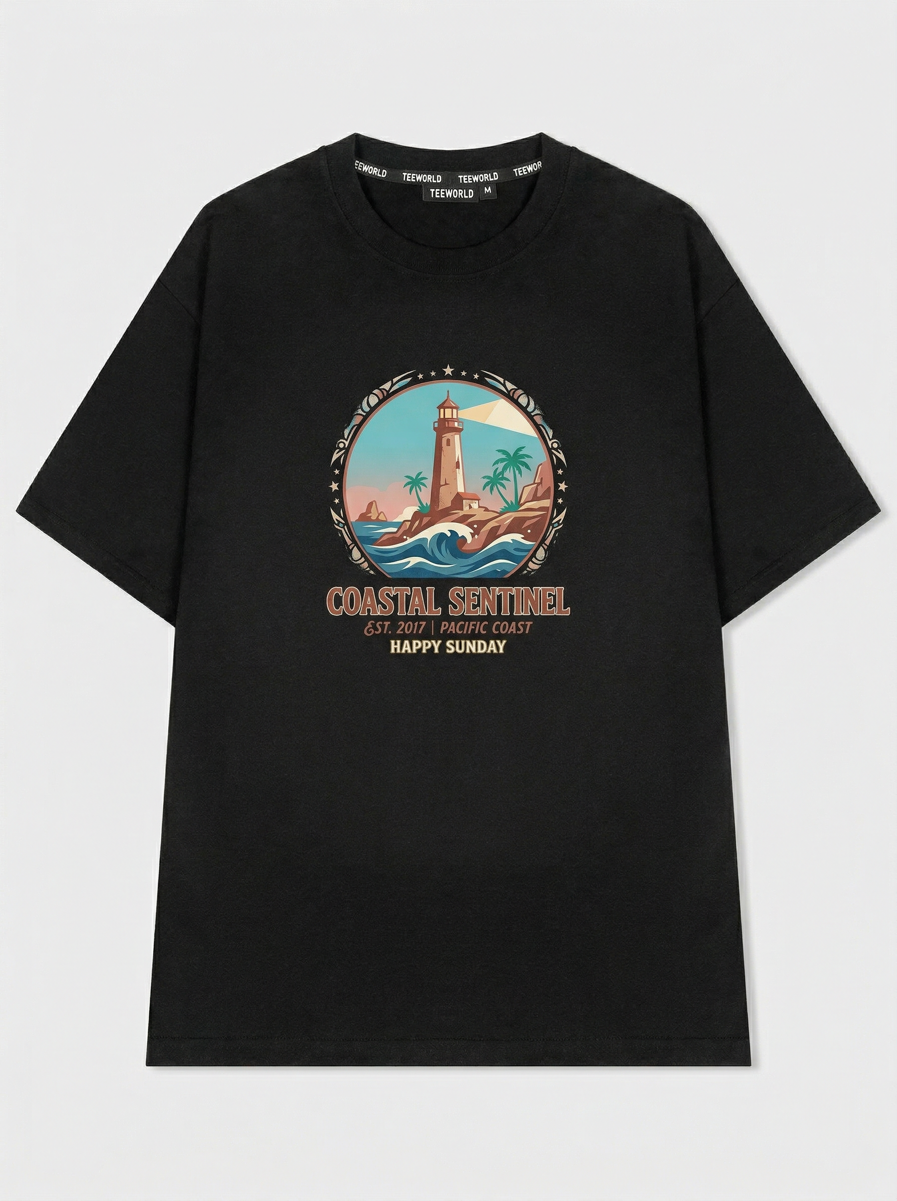 Shoreline Beacon - Thiết kế độc quyền từ Happy Sunday. Chất liệu: Cotton Premium 250gsm, form oversize thoải mái. In ấn: Công nghệ in sắc nét, bền màu sau nhiều lần giặt. Phong cách: Đồ họa nghệ thuật, nổi bật.