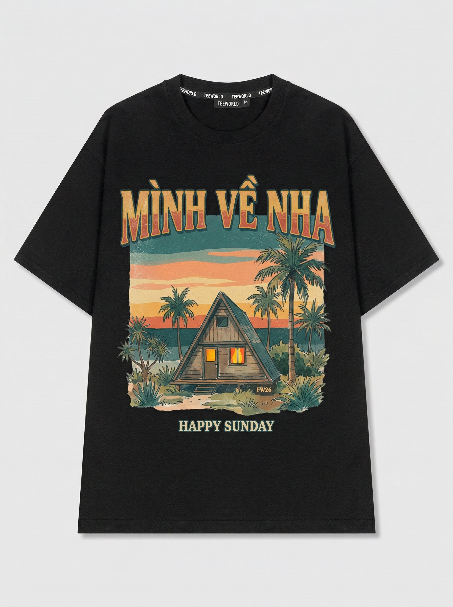 Shoreline - Thiết kế độc quyền từ Happy Sunday. Chất liệu: Cotton Premium 250gsm, form oversize thoải mái. In ấn: Công nghệ in sắc nét, bền màu sau nhiều lần giặt. Phong cách: Streetwear hiện đại, dễ phối đồ.