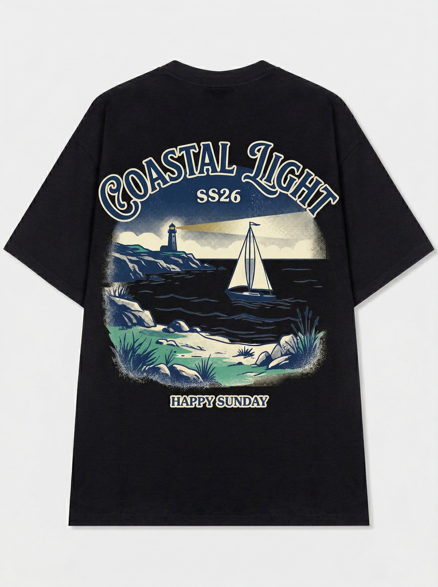 Shoreline View - Thiết kế độc quyền từ Happy Sunday. Chất liệu: Cotton Premium 250gsm, form oversize thoải mái. In ấn: Công nghệ in sắc nét, bền màu sau nhiều lần giặt. Phong cách: Streetwear hiện đại, dễ phối đồ.