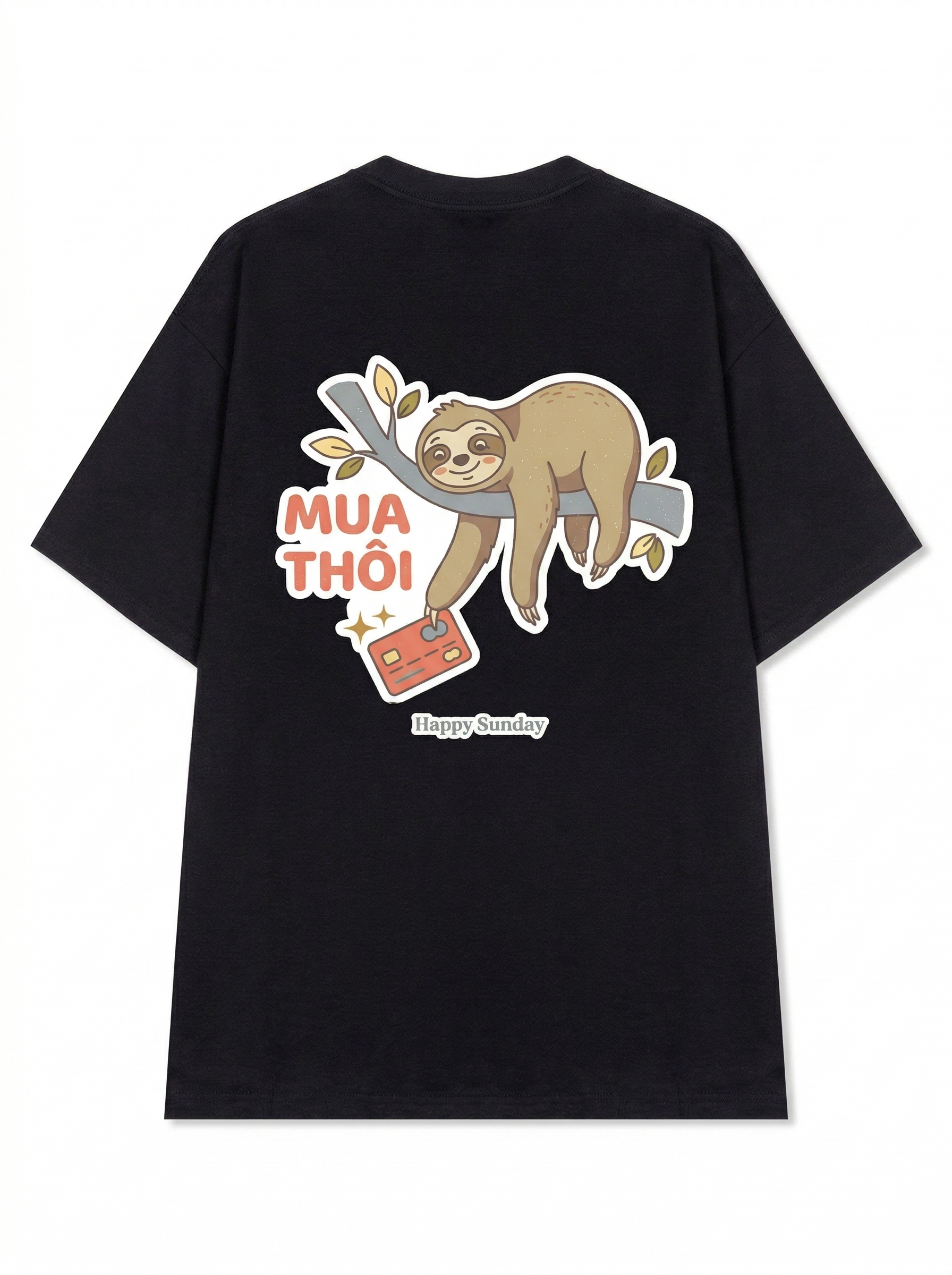Sloth Spend - Thiết kế độc quyền từ Happy Sunday. Chất liệu: Cotton Premium 250gsm, form oversize thoải mái. In ấn: Công nghệ in sắc nét, bền màu sau nhiều lần giặt. Phong cách: Streetwear hiện đại, dễ phối đồ.