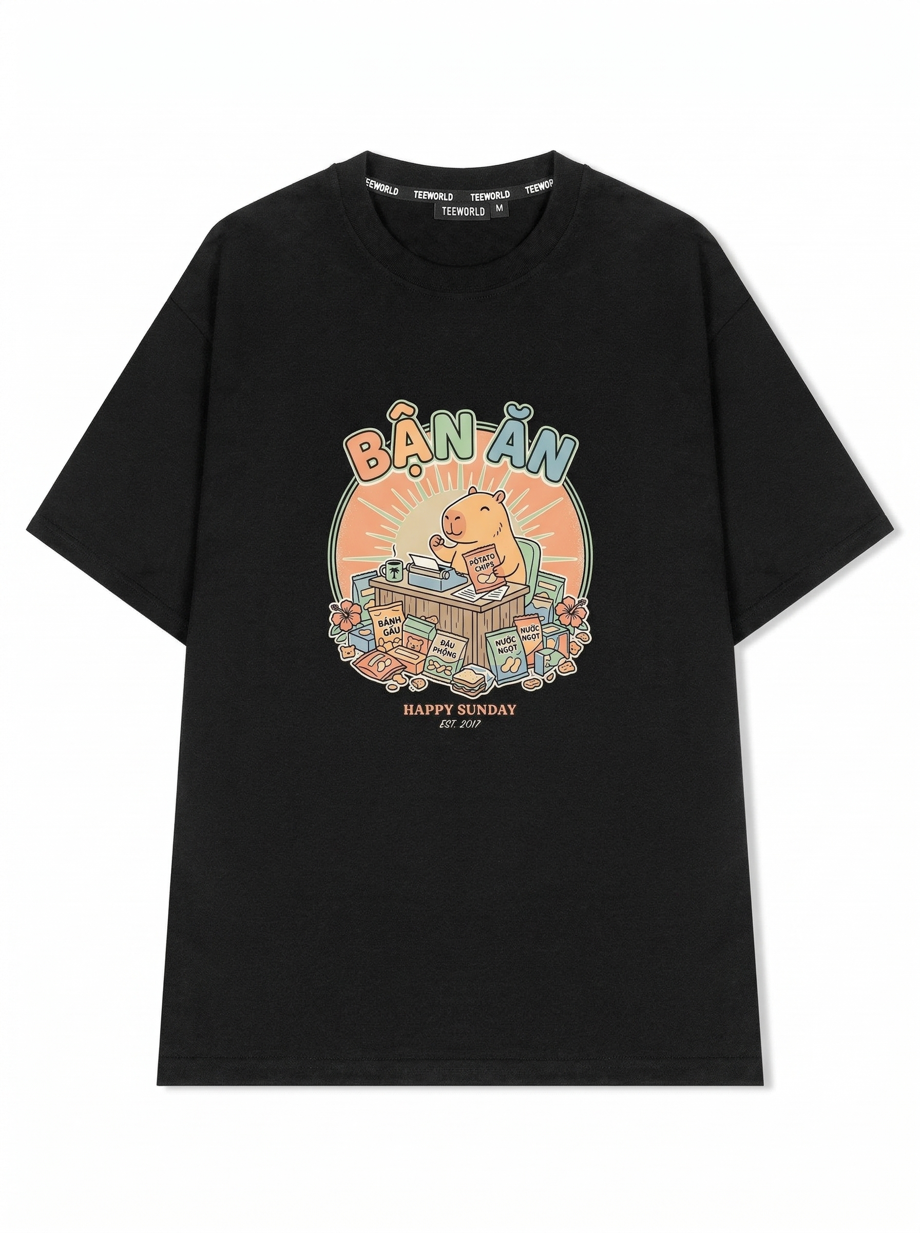 Snack Boss - Thiết kế độc quyền từ Happy Sunday. Chất liệu: Cotton Premium 250gsm, form oversize thoải mái. In ấn: Công nghệ in sắc nét, bền màu sau nhiều lần giặt. Phong cách: Streetwear hiện đại, dễ phối đồ.