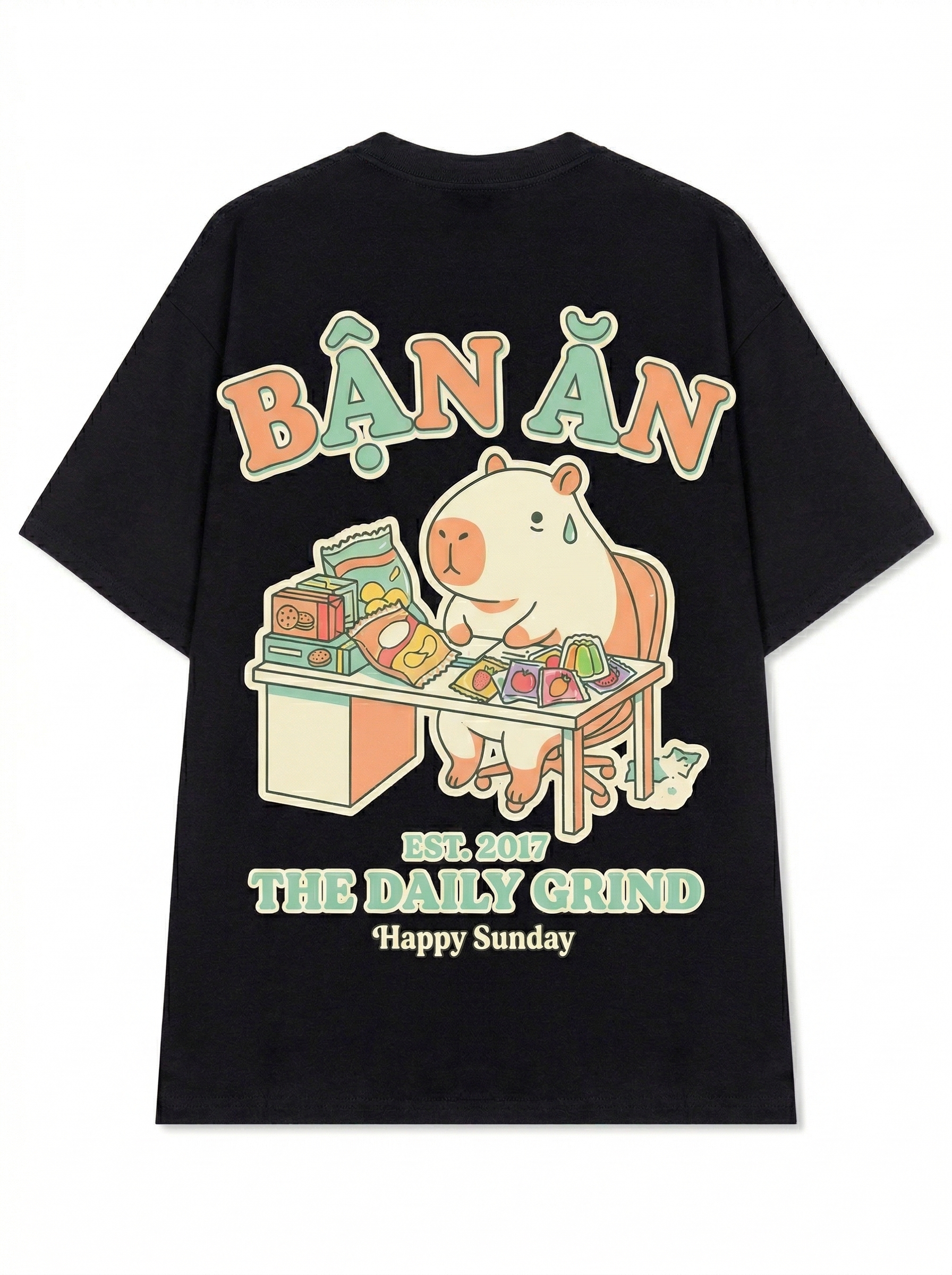 Snacker Boss - Thiết kế độc quyền từ Happy Sunday. Chất liệu: Cotton Premium 250gsm, form oversize thoải mái. In ấn: Công nghệ in sắc nét, bền màu sau nhiều lần giặt. Phong cách: Streetwear hiện đại, dễ phối đồ.