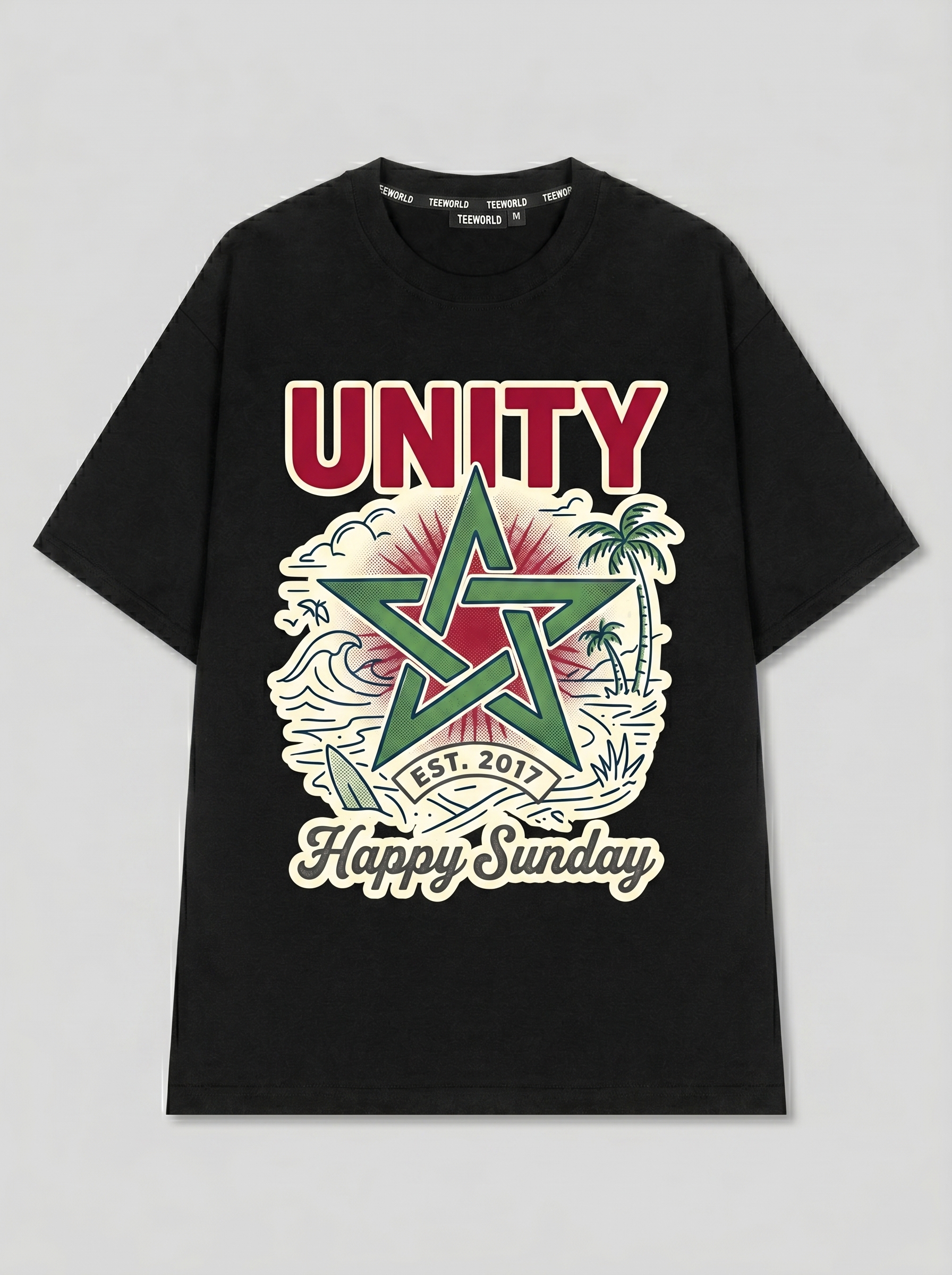Star Emblem - Thiết kế độc quyền từ Happy Sunday. Chất liệu: Cotton Premium 250gsm, form oversize thoải mái. In ấn: Công nghệ in sắc nét, bền màu sau nhiều lần giặt. Phong cách: Đồ họa nghệ thuật, nổi bật.