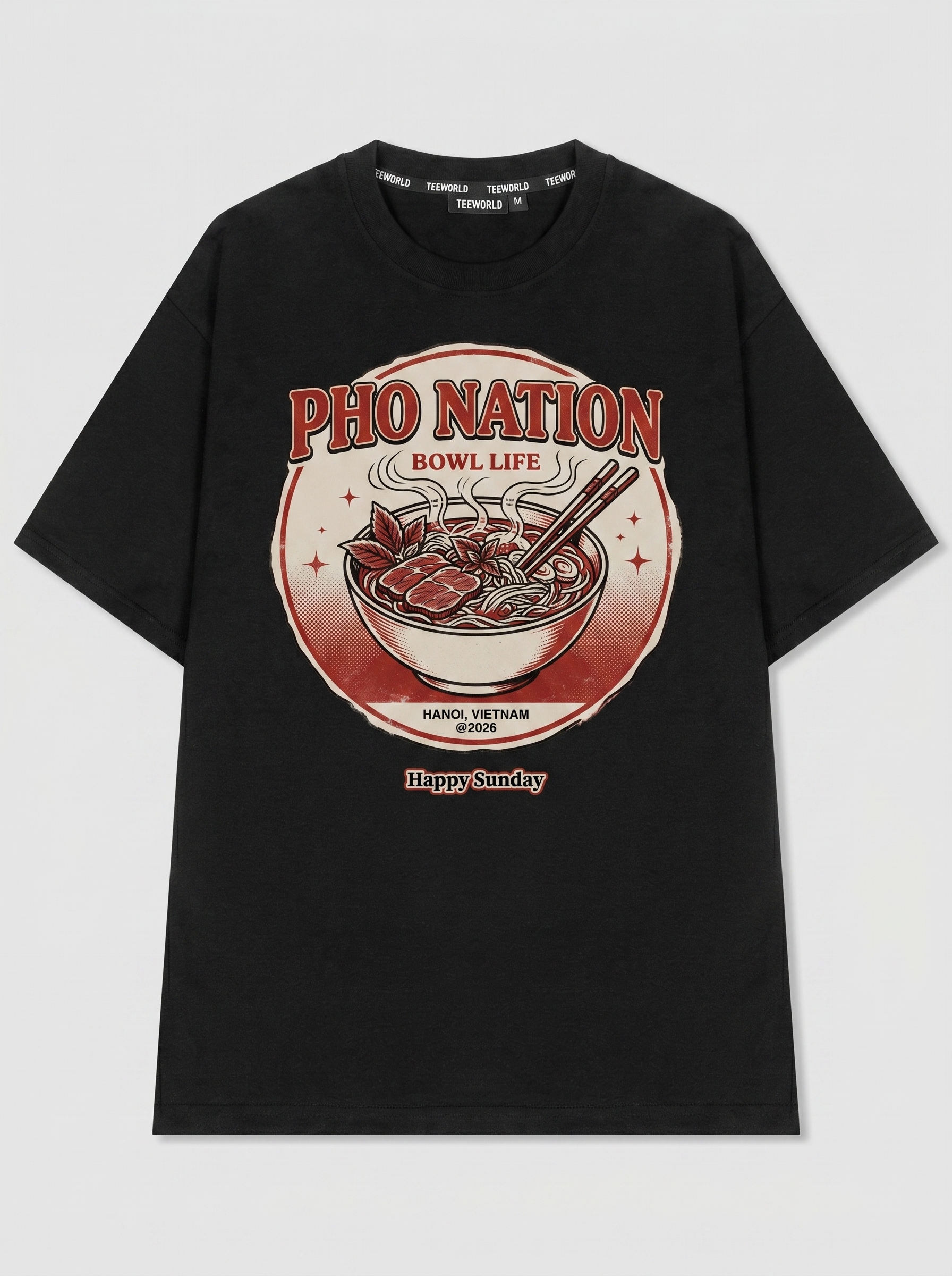 Street Pho - Thiết kế độc quyền từ Happy Sunday. Chất liệu: Cotton Premium 250gsm, form oversize thoải mái. In ấn: Công nghệ in sắc nét, bền màu sau nhiều lần giặt. Phong cách: Đồ họa nghệ thuật, nổi bật.