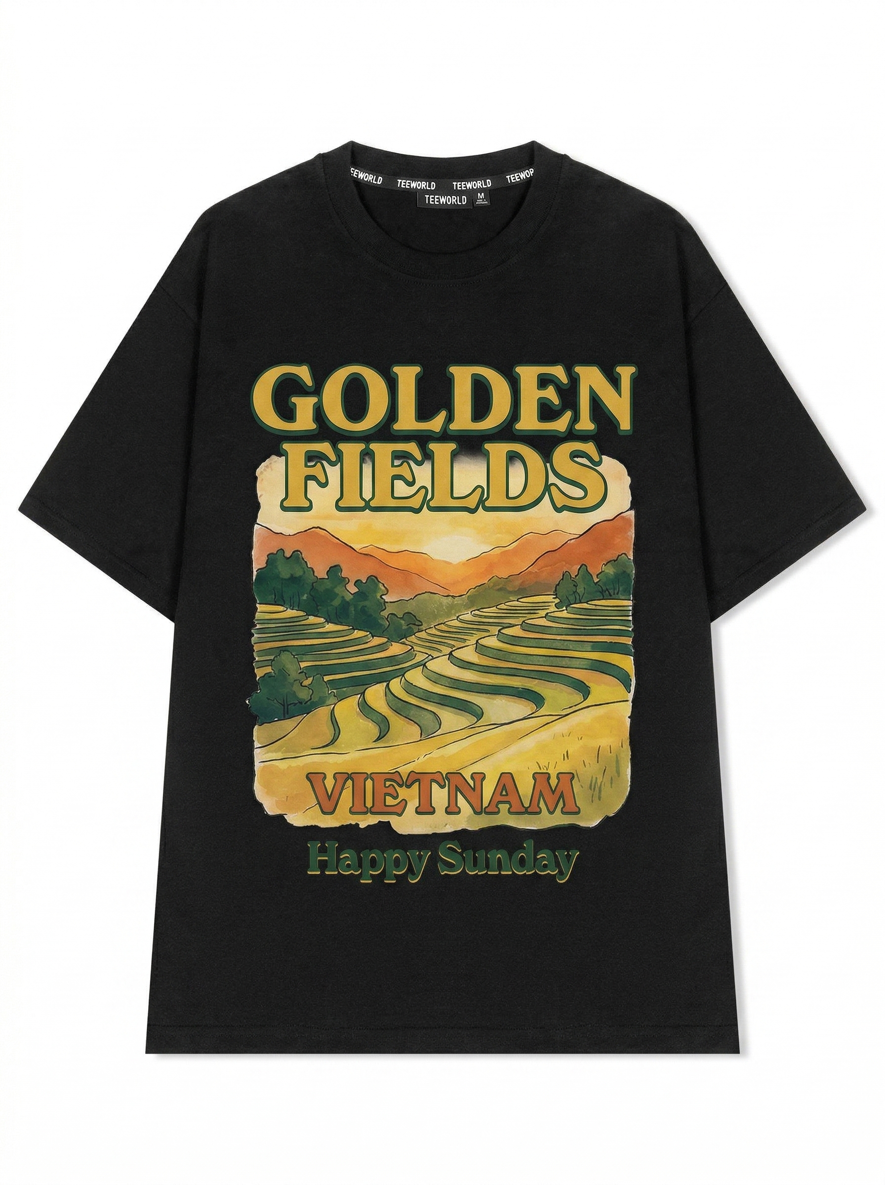 Sunlit Harvest - Thiết kế độc quyền từ Happy Sunday. Chất liệu: Cotton Premium 250gsm, form oversize thoải mái. In ấn: Công nghệ in sắc nét, bền màu sau nhiều lần giặt. Phong cách: Đồ họa nghệ thuật, nổi bật.