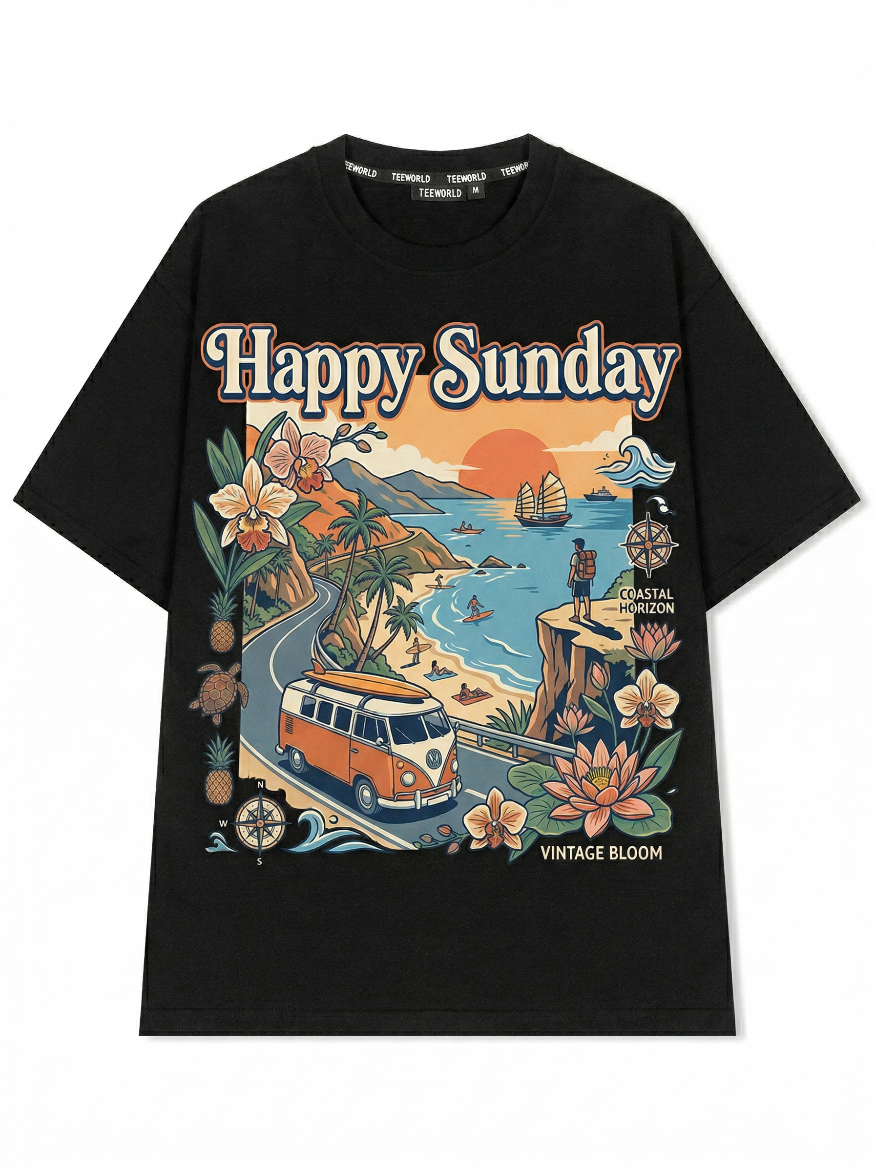 Sunset Pier - Thiết kế độc quyền từ Happy Sunday. Chất liệu: Cotton Premium 250gsm, form oversize thoải mái. In ấn: Công nghệ in sắc nét, bền màu sau nhiều lần giặt. Phong cách: Đồ họa nghệ thuật, nổi bật.