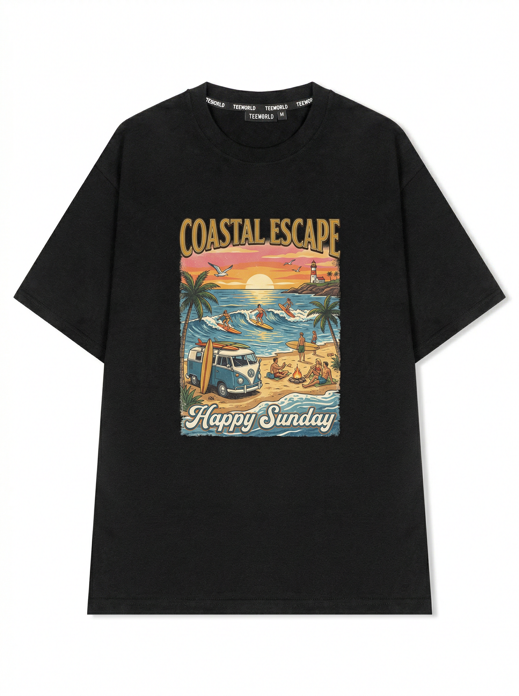 Sunset Pier - Thiết kế độc quyền từ Happy Sunday. Chất liệu: Cotton Premium 250gsm, form oversize thoải mái. In ấn: Công nghệ in sắc nét, bền màu sau nhiều lần giặt. Phong cách: Đồ họa nghệ thuật, nổi bật.