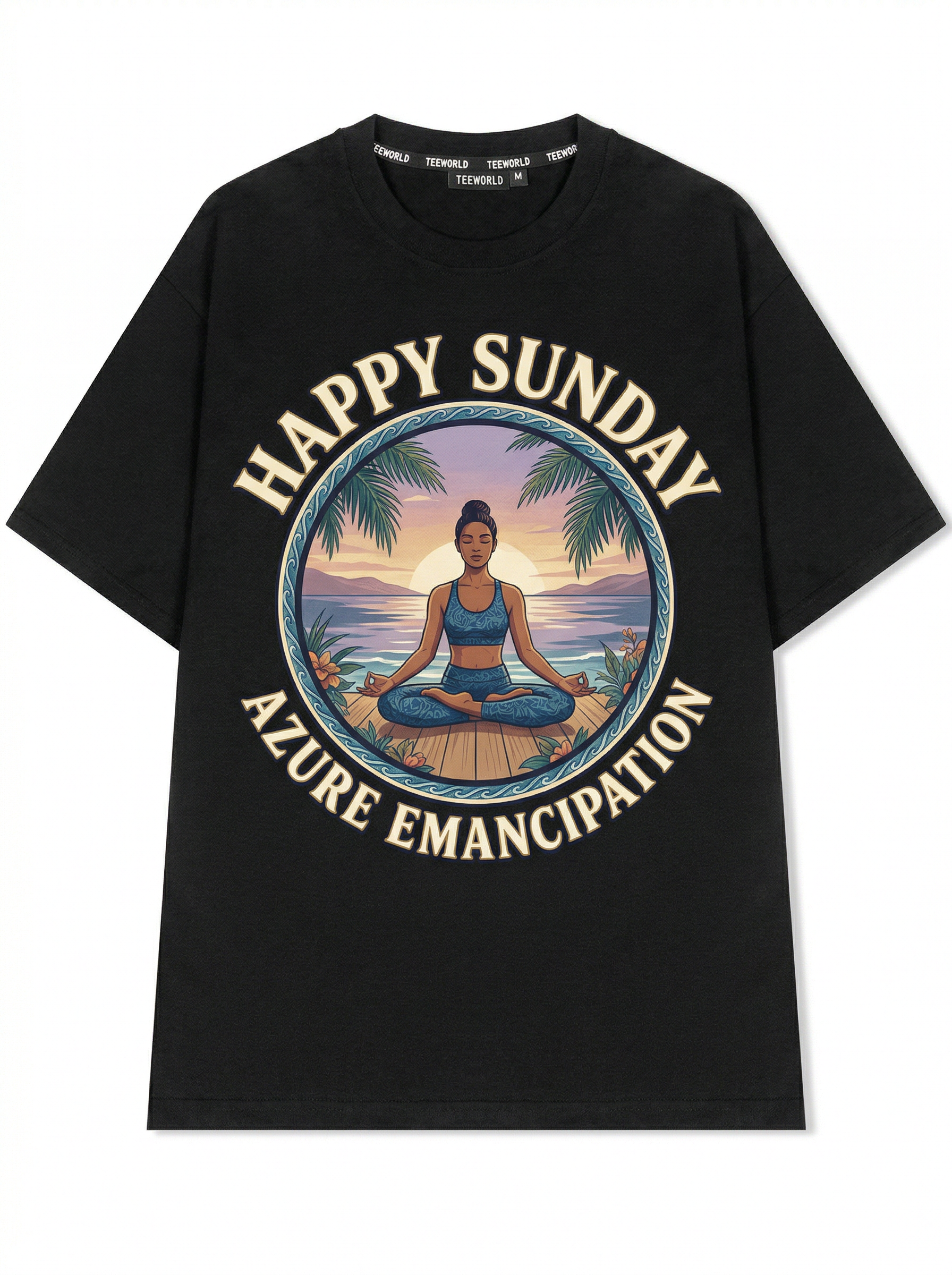 Sunset Serenity Pose - Thiết kế độc quyền từ Happy Sunday. Chất liệu: Cotton Premium 250gsm, form oversize thoải mái. In ấn: Công nghệ in sắc nét, bền màu sau nhiều lần giặt. Phong cách: Đồ họa nghệ thuật, nổi bật.