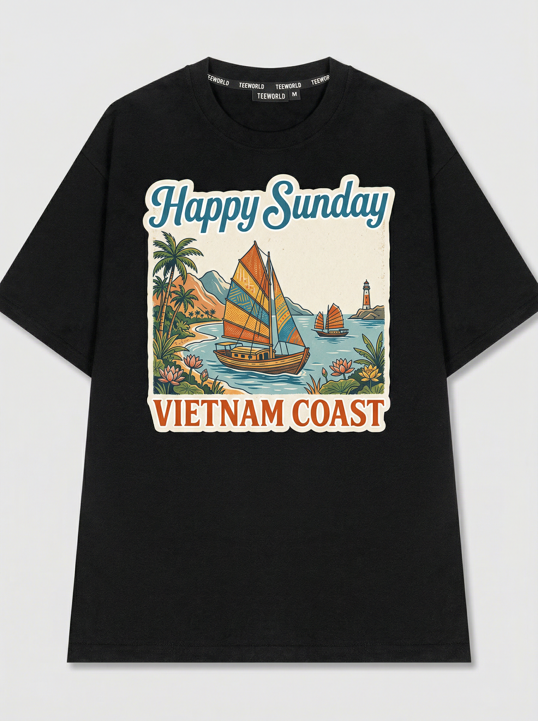 Surf & Sand - Thiết kế độc quyền từ Happy Sunday. Chất liệu: Cotton Premium 250gsm, form oversize thoải mái. In ấn: Công nghệ in sắc nét, bền màu sau nhiều lần giặt. Phong cách: Đồ họa nghệ thuật, nổi bật.