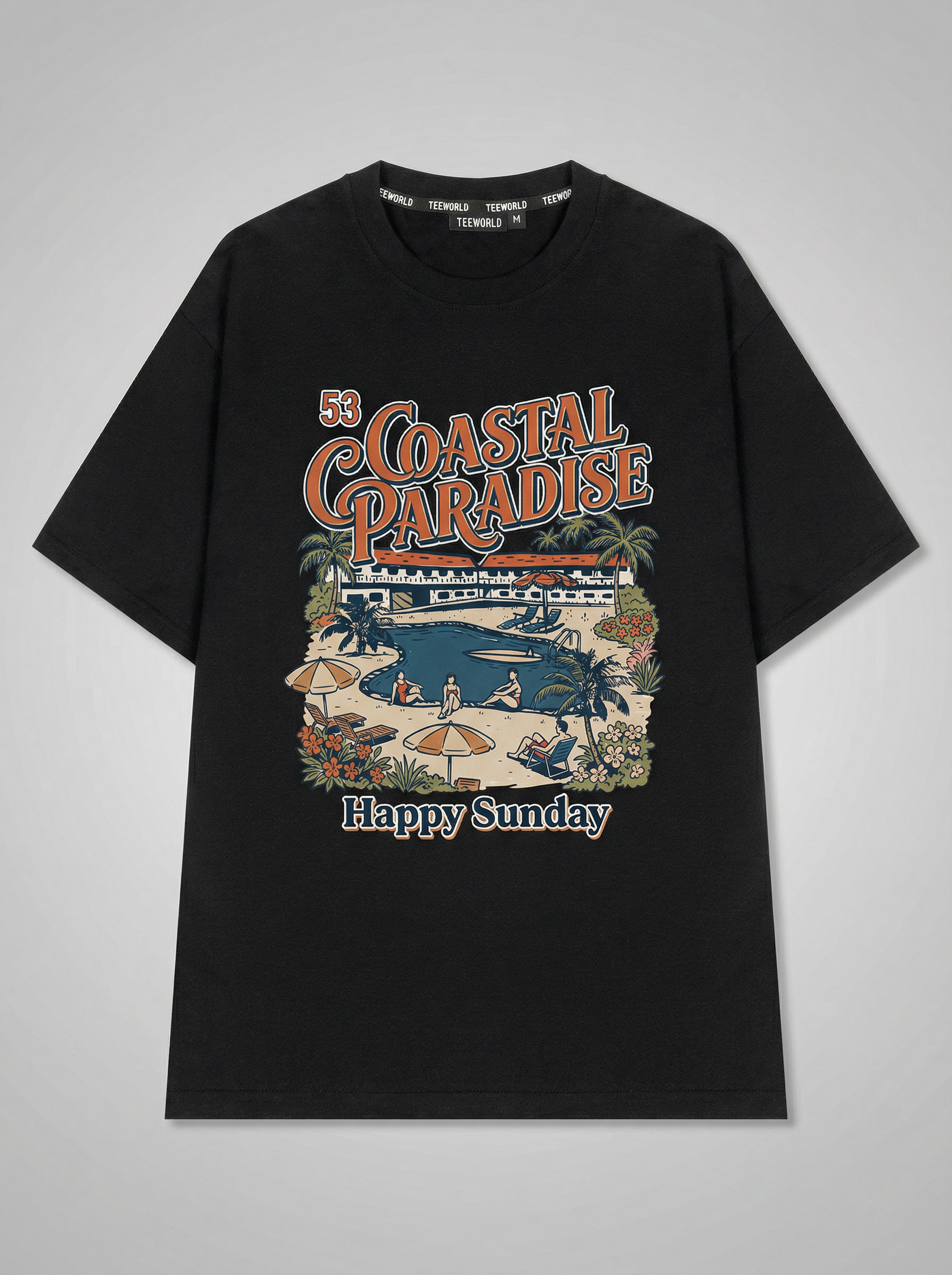 Surf & Sand - Thiết kế độc quyền từ Happy Sunday. Chất liệu: Cotton Premium 250gsm, form oversize thoải mái. In ấn: Công nghệ in sắc nét, bền màu sau nhiều lần giặt. Phong cách: Đồ họa nghệ thuật, nổi bật.