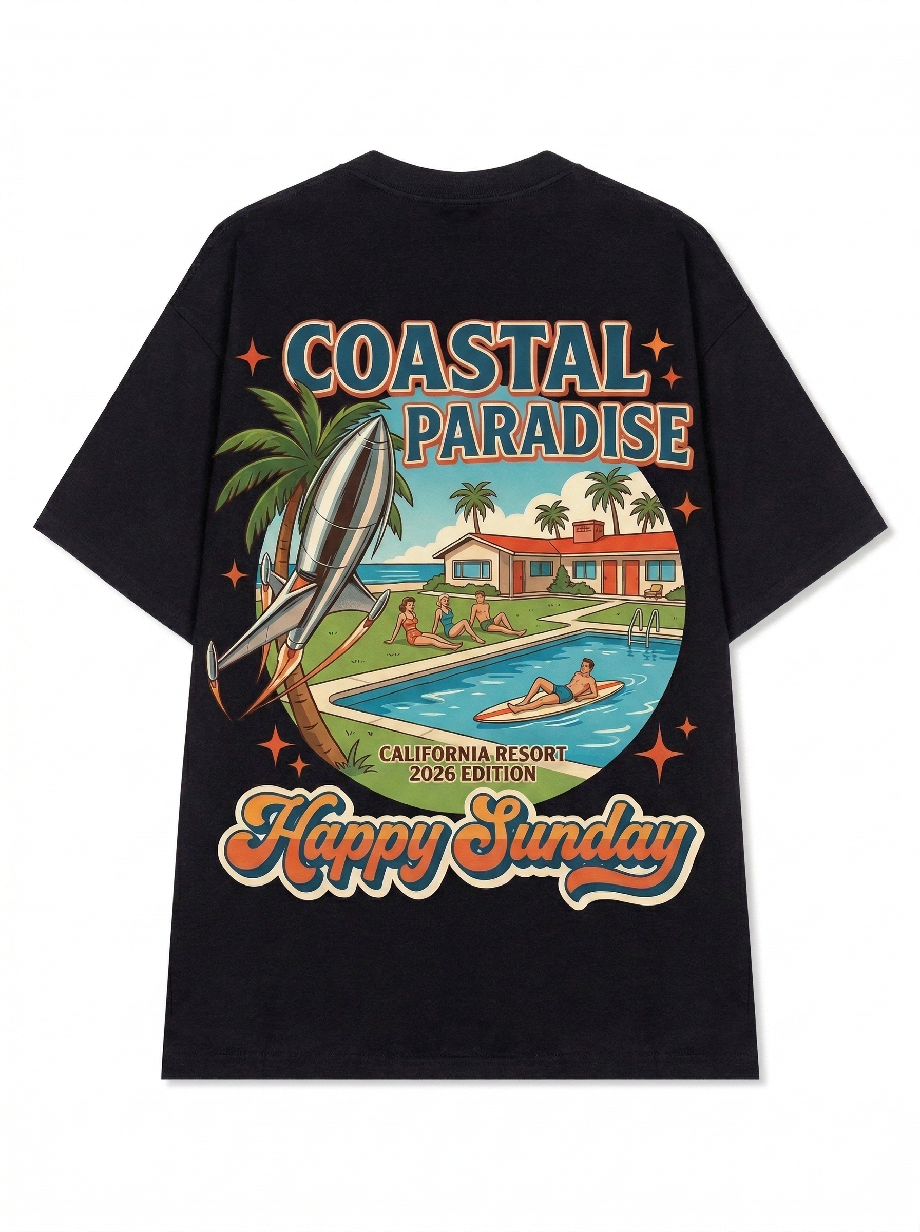 Surf & Sand - Thiết kế độc quyền từ Happy Sunday. Chất liệu: Cotton Premium 250gsm, form oversize thoải mái. In ấn: Công nghệ in sắc nét, bền màu sau nhiều lần giặt. Phong cách: Streetwear hiện đại, dễ phối đồ.
