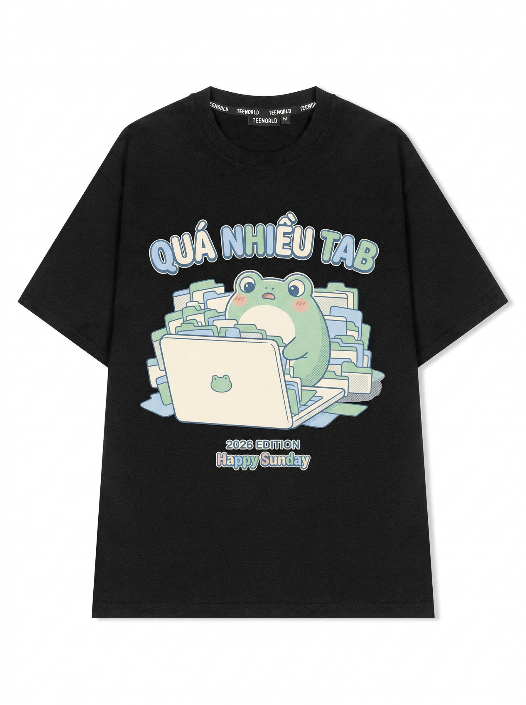 Tab Overload - Thiết kế độc quyền từ Happy Sunday. Chất liệu: Cotton Premium 250gsm, form oversize thoải mái. In ấn: Công nghệ in sắc nét, bền màu sau nhiều lần giặt. Phong cách: Streetwear hiện đại, dễ phối đồ.
