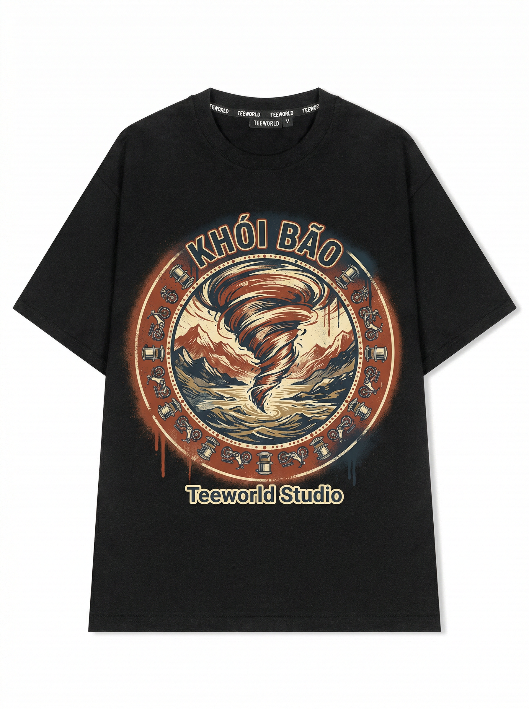 Tâm Bão - Thiết kế độc quyền từ Teeworld. Chất liệu: Cotton Premium 250gsm, form oversize thoải mái. In ấn: Công nghệ in sắc nét, bền màu sau nhiều lần giặt. Phong cách: Streetwear hiện đại, dễ phối đồ.