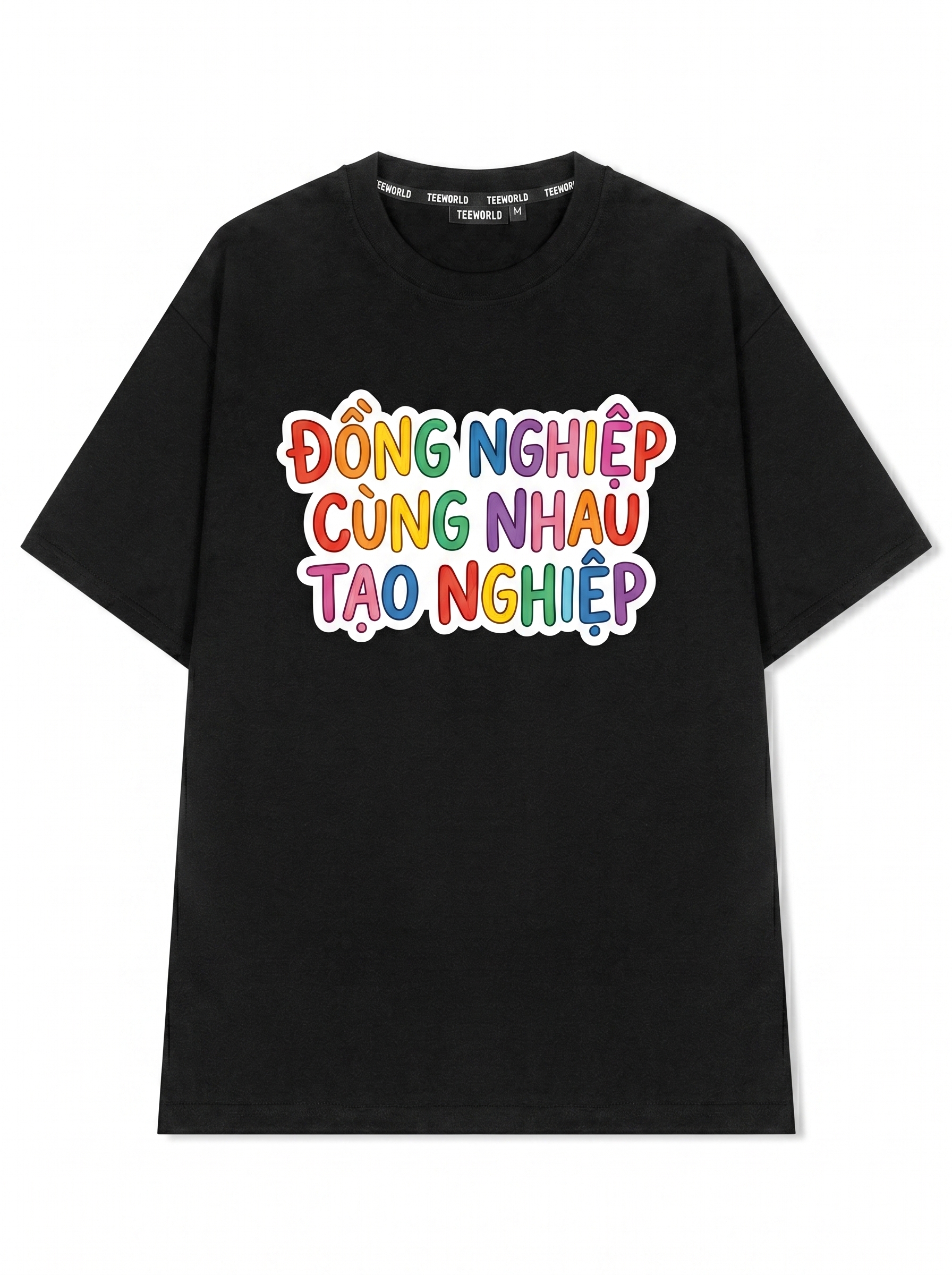 Tạo Nghiệp - Thiết kế độc quyền từ Teeworld. Chất liệu: Cotton Premium 250gsm, form oversize thoải mái. In ấn: Công nghệ in sắc nét, bền màu sau nhiều lần giặt. Phong cách: Streetwear hiện đại, dễ phối đồ.