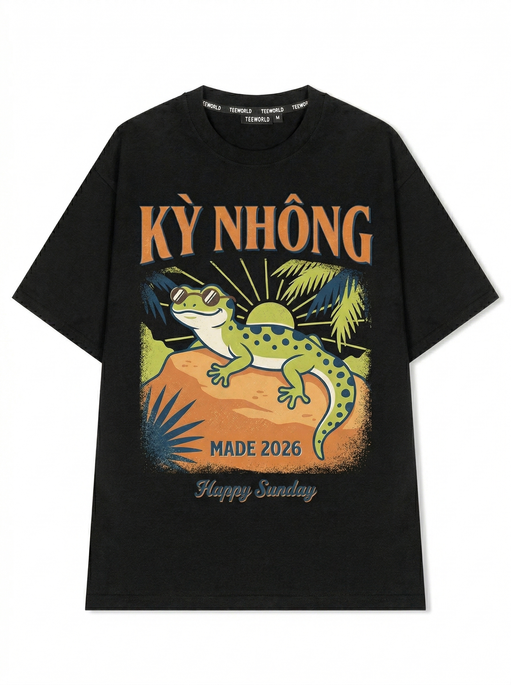 Thằn Lằn - Thiết kế độc quyền từ Happy Sunday. Chất liệu: Cotton Premium 250gsm, form oversize thoải mái. In ấn: Công nghệ in sắc nét, bền màu sau nhiều lần giặt. Phong cách: Streetwear hiện đại, dễ phối đồ.