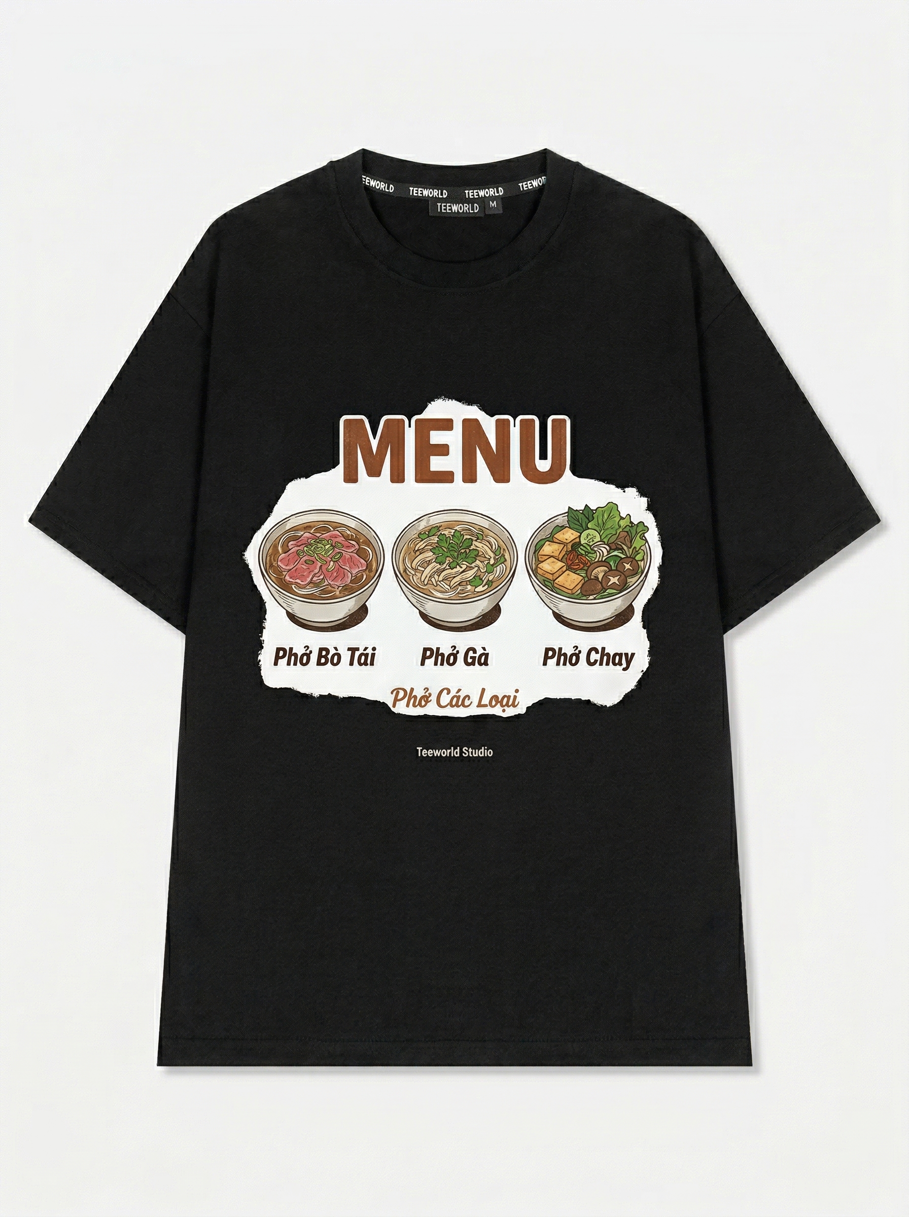 Thực Đơn Phở - Thiết kế độc quyền từ Teeworld. Chất liệu: Cotton Premium 250gsm, form oversize thoải mái. In ấn: Công nghệ in sắc nét, bền màu sau nhiều lần giặt. Phong cách: Streetwear hiện đại, dễ phối đồ.