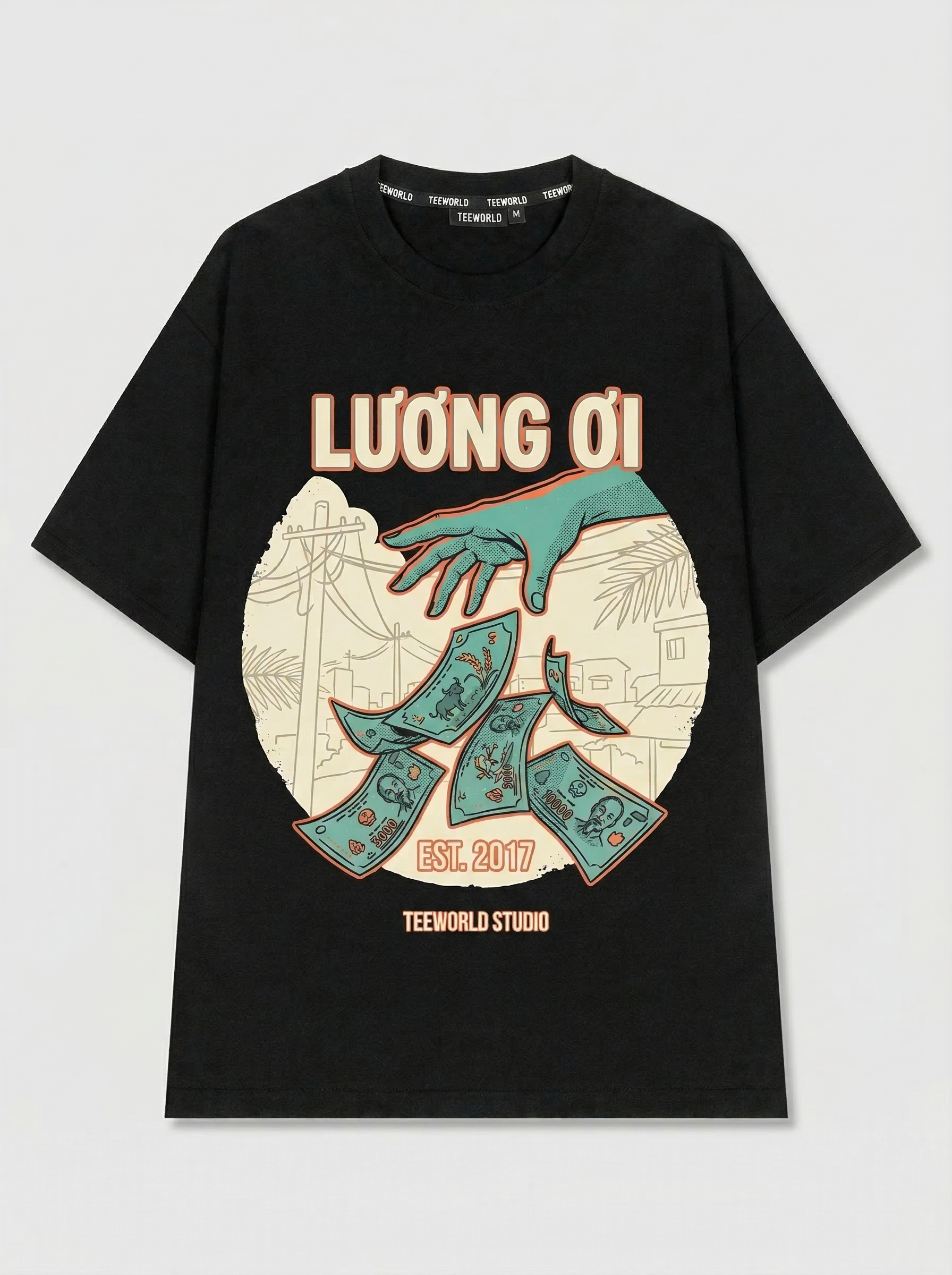 Tiền Ước - Thiết kế độc quyền từ Teeworld. Chất liệu: Cotton Premium 250gsm, form oversize thoải mái. In ấn: Công nghệ in sắc nét, bền màu sau nhiều lần giặt. Phong cách: Streetwear hiện đại, dễ phối đồ.