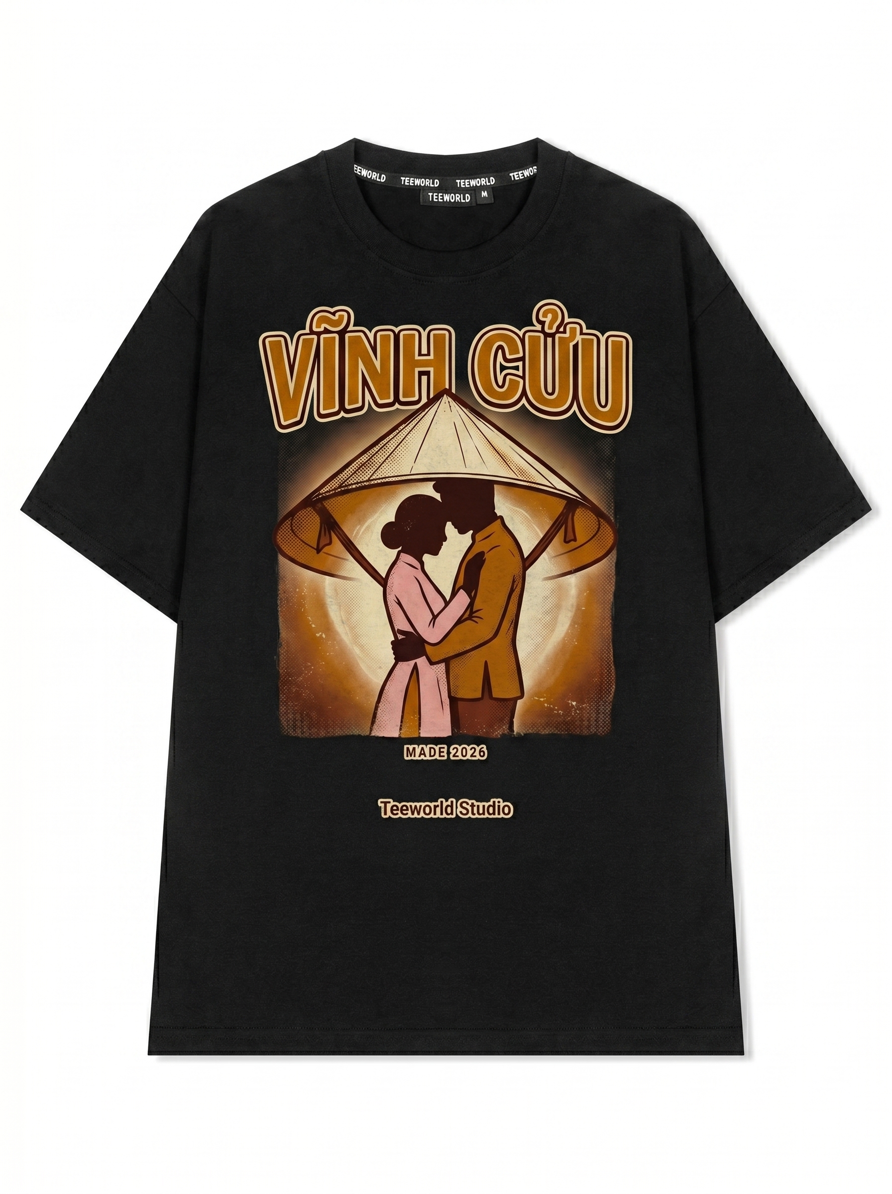 Tình Vĩnh Cửu - Thiết kế độc quyền từ Teeworld. Chất liệu: Cotton Premium 250gsm, form oversize thoải mái. In ấn: Công nghệ in sắc nét, bền màu sau nhiều lần giặt. Phong cách: Streetwear hiện đại, dễ phối đồ.