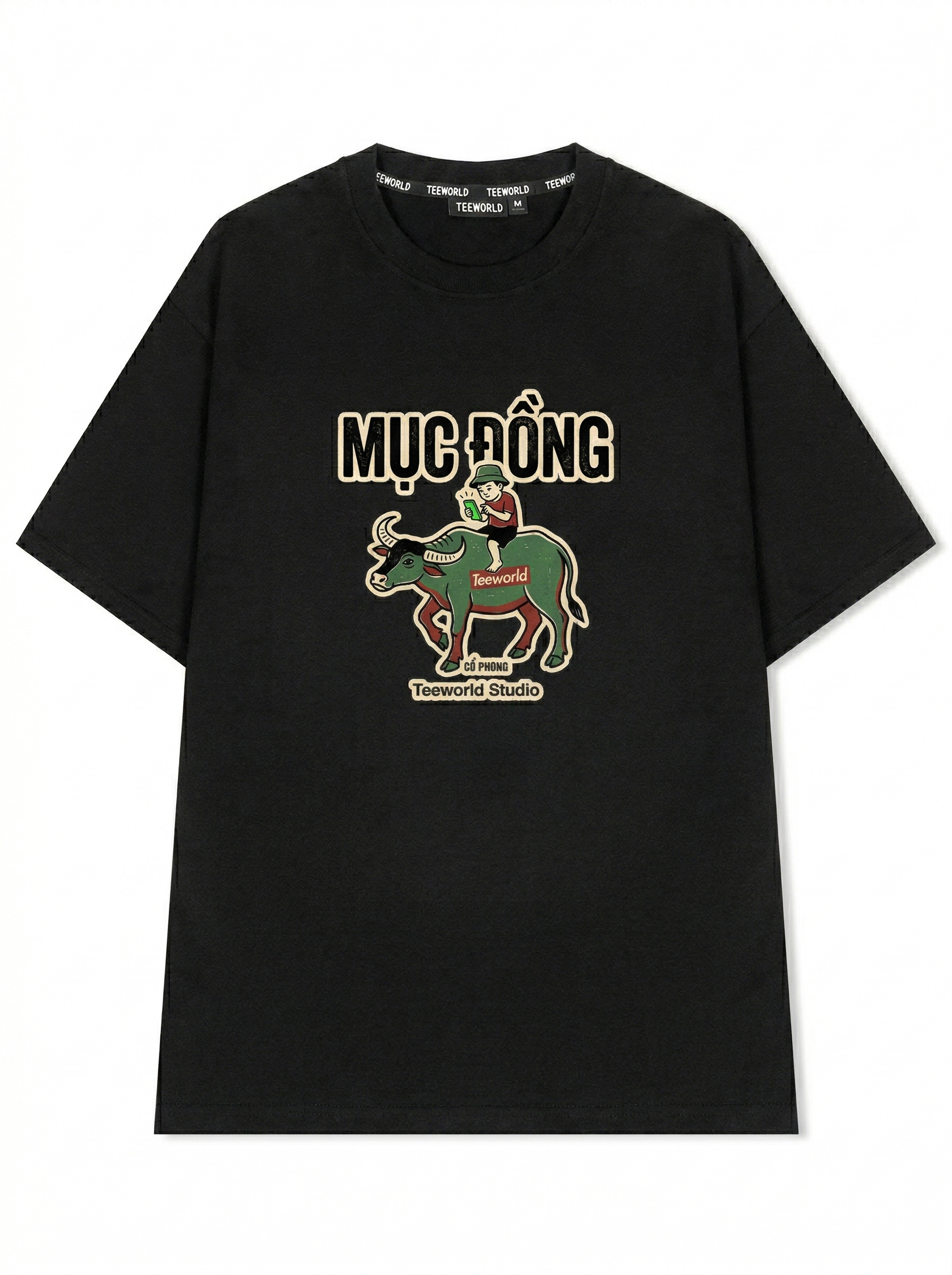 Trâu Lướt - Thiết kế độc quyền từ Teeworld. Chất liệu: Cotton Premium 250gsm, form oversize thoải mái. In ấn: Công nghệ in sắc nét, bền màu sau nhiều lần giặt. Phong cách: Streetwear hiện đại, dễ phối đồ.