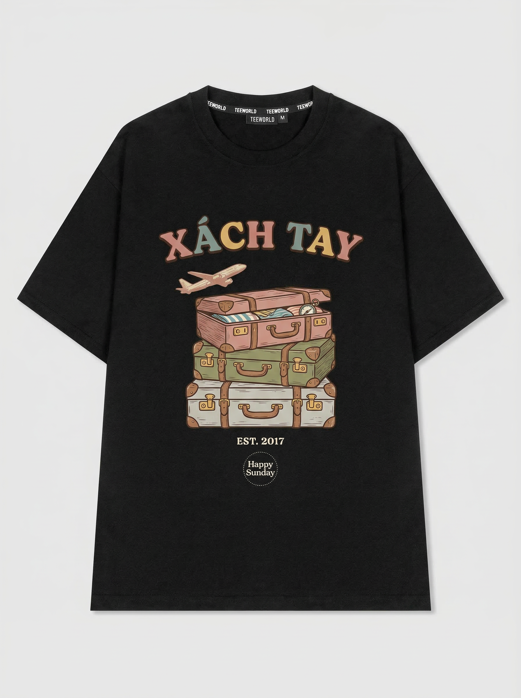 Travel Haul - Thiết kế độc quyền từ Happy Sunday. Chất liệu: Cotton Premium 250gsm, form oversize thoải mái. In ấn: Công nghệ in sắc nét, bền màu sau nhiều lần giặt. Phong cách: Streetwear hiện đại, dễ phối đồ.