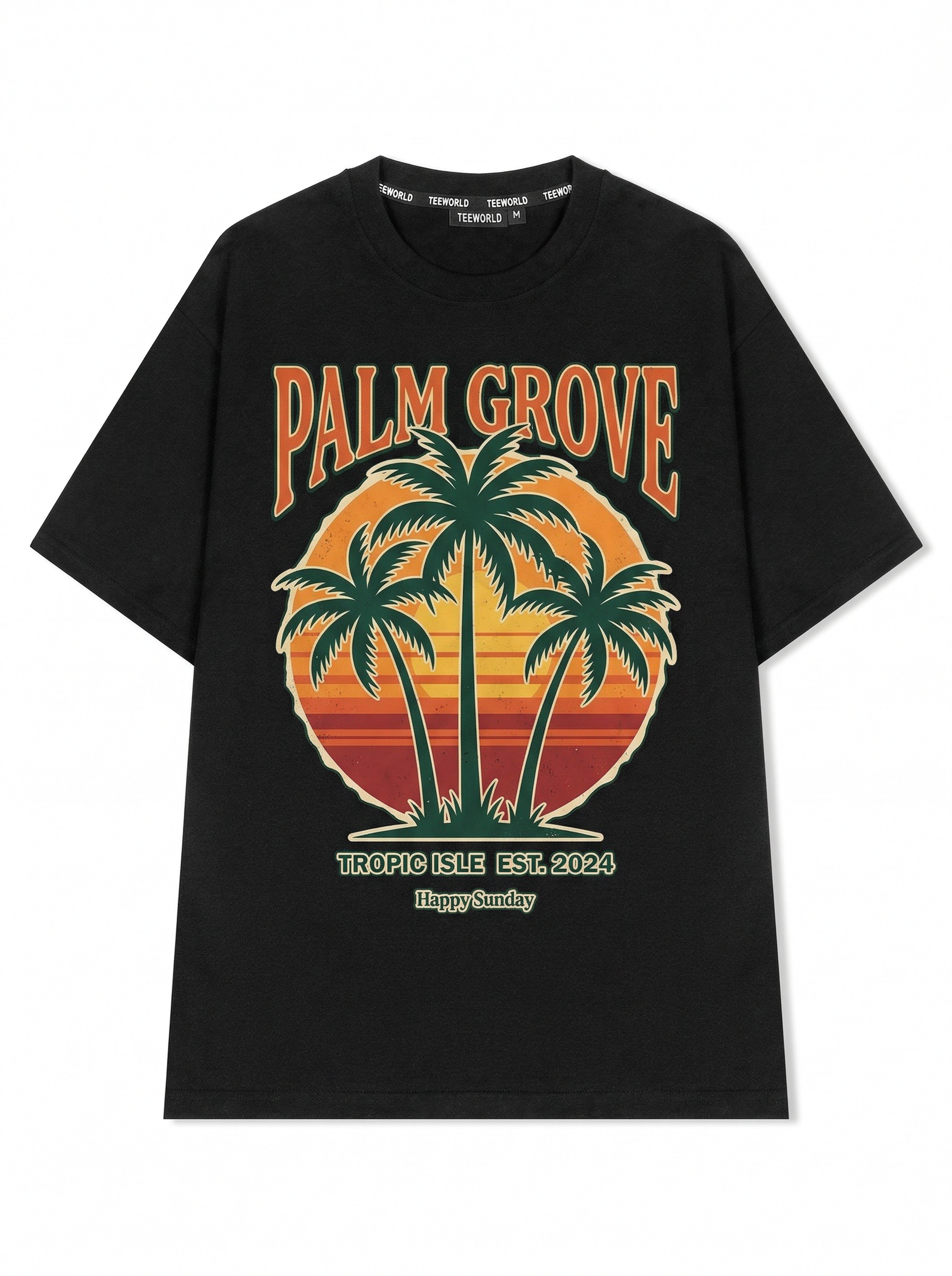Tropic Sunset - Thiết kế độc quyền từ Happy Sunday. Chất liệu: Cotton Premium 250gsm, form oversize thoải mái. In ấn: Công nghệ in sắc nét, bền màu sau nhiều lần giặt. Phong cách: Đồ họa nghệ thuật, nổi bật.