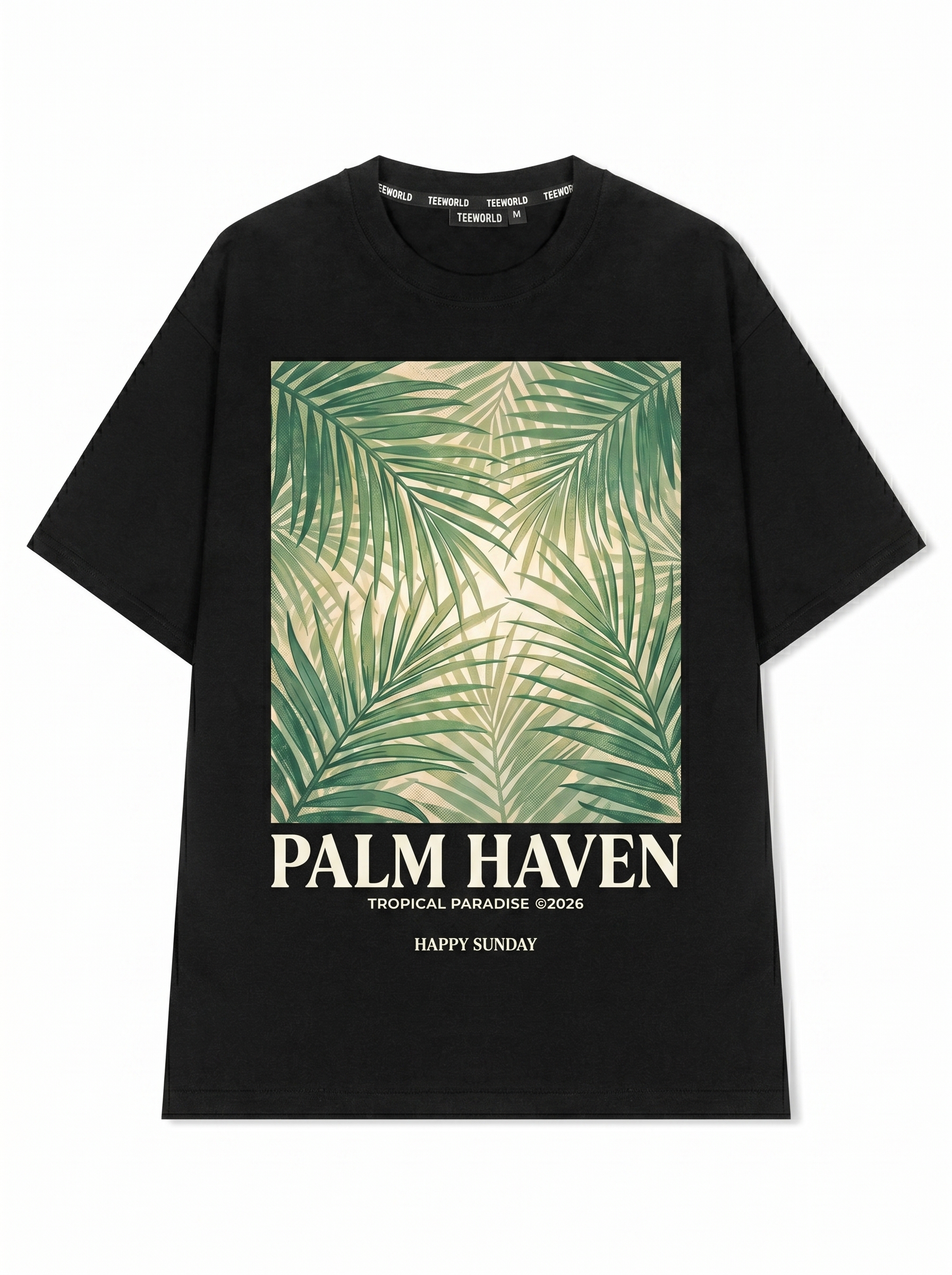 Tropical Canopy - Thiết kế độc quyền từ Happy Sunday. Chất liệu: Cotton Premium 250gsm, form oversize thoải mái. In ấn: Công nghệ in sắc nét, bền màu sau nhiều lần giặt. Phong cách: Đồ họa nghệ thuật, nổi bật.
