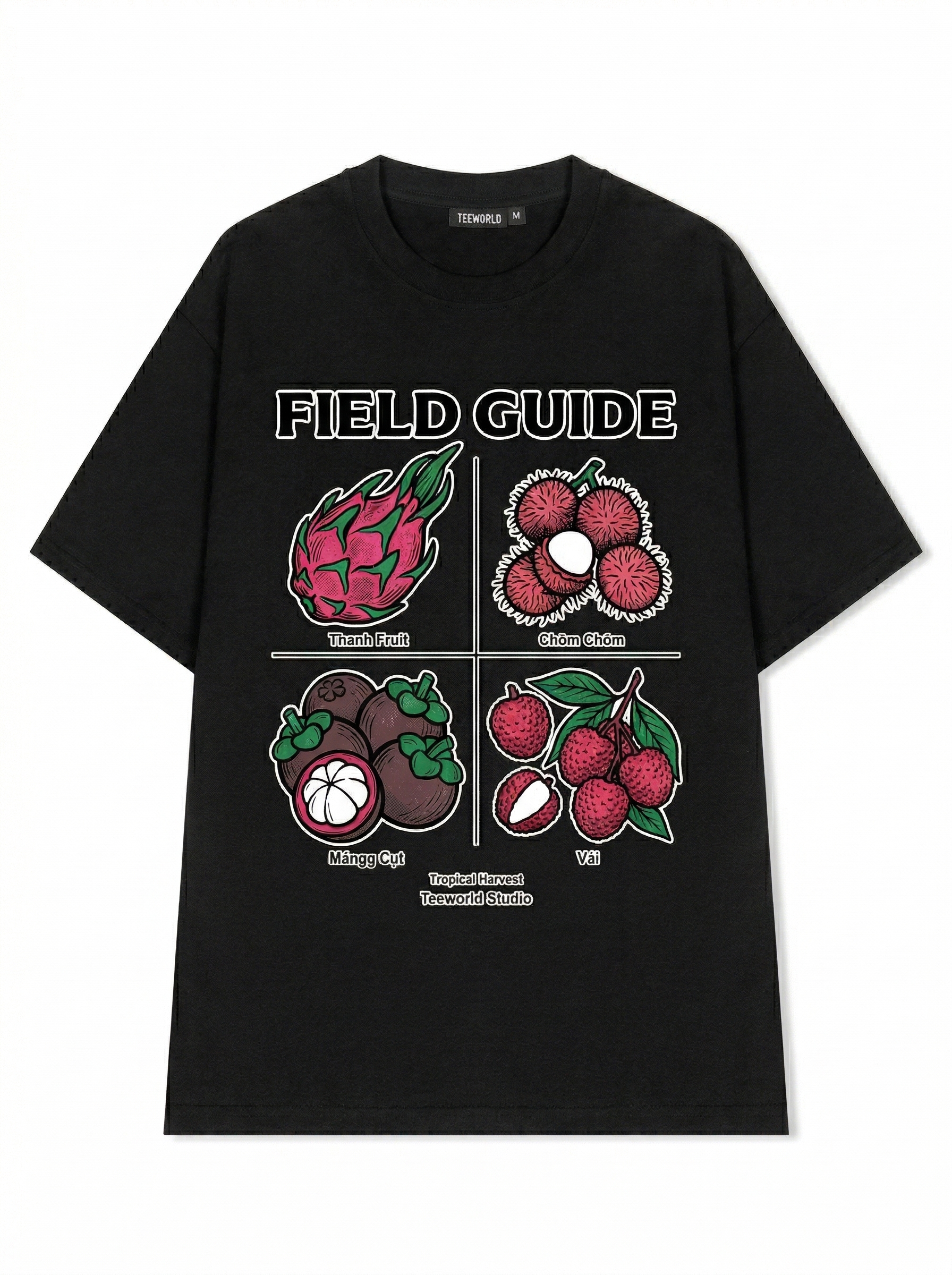 Tropical Fruit Guide - Thiết kế độc quyền từ Teeworld. Chất liệu: Cotton Premium 250gsm, form oversize thoải mái. In ấn: Công nghệ in sắc nét, bền màu sau nhiều lần giặt. Phong cách: Streetwear hiện đại, dễ phối đồ.