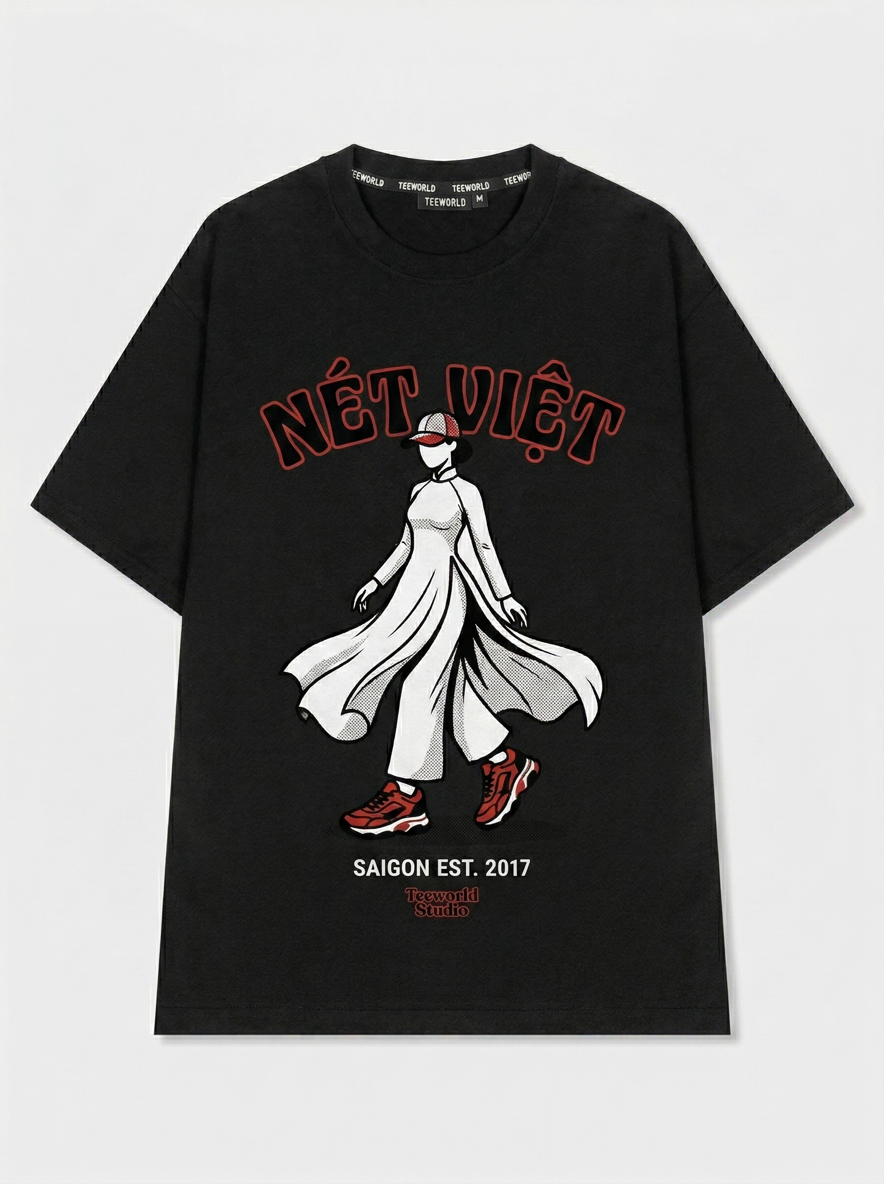 Việt Duyên - Thiết kế độc quyền từ Teeworld. Chất liệu: Cotton Premium 250gsm, form oversize thoải mái. In ấn: Công nghệ in sắc nét, bền màu sau nhiều lần giặt. Phong cách: Streetwear hiện đại, dễ phối đồ.