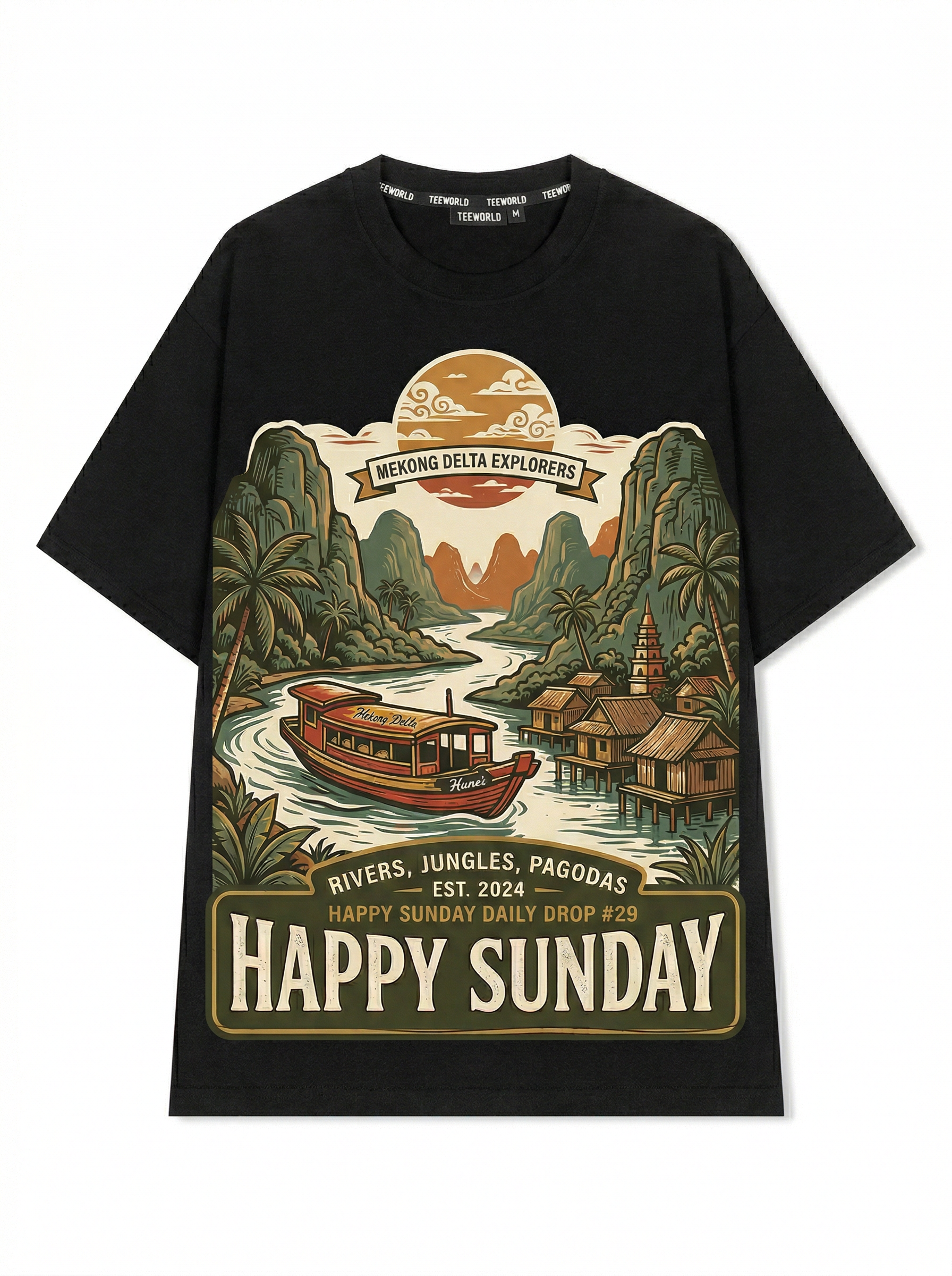 Vietnamese Culture Graphic Art - Thiết kế độc quyền từ Happy Sunday. Chất liệu: Cotton Premium 250gsm, form oversize thoải mái. In ấn: Công nghệ in sắc nét, bền màu sau nhiều lần giặt. Phong cách: Đồ họa nghệ thuật, nổi bật.