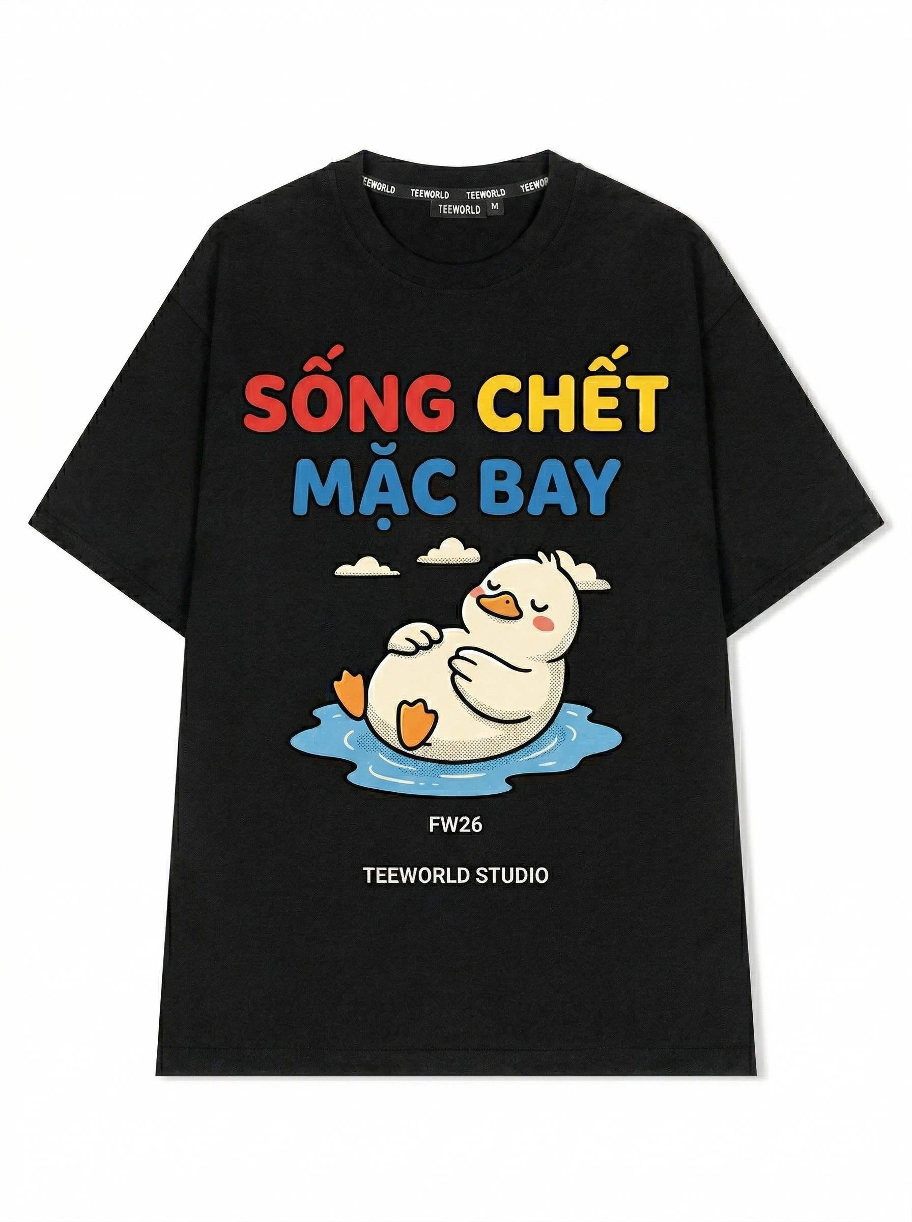 Vịt Ung Dung - Thiết kế độc quyền từ Teeworld. Chất liệu: Cotton Premium 250gsm, form oversize thoải mái. In ấn: Công nghệ in sắc nét, bền màu sau nhiều lần giặt. Phong cách: Streetwear hiện đại, dễ phối đồ.