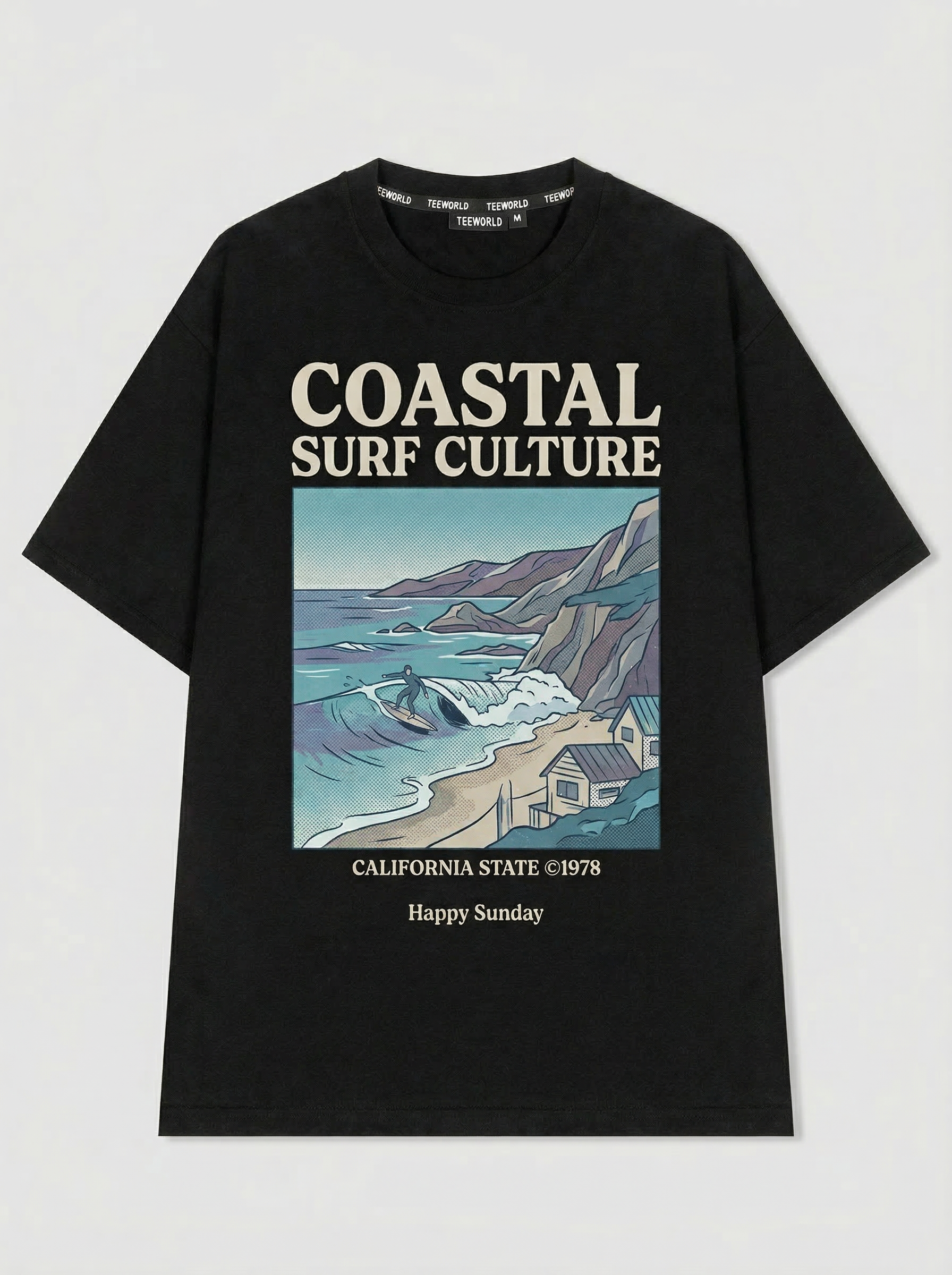 Wave Rider - Thiết kế độc quyền từ Happy Sunday. Chất liệu: Cotton Premium 250gsm, form oversize thoải mái. In ấn: Công nghệ in sắc nét, bền màu sau nhiều lần giặt. Phong cách: Streetwear hiện đại, dễ phối đồ.