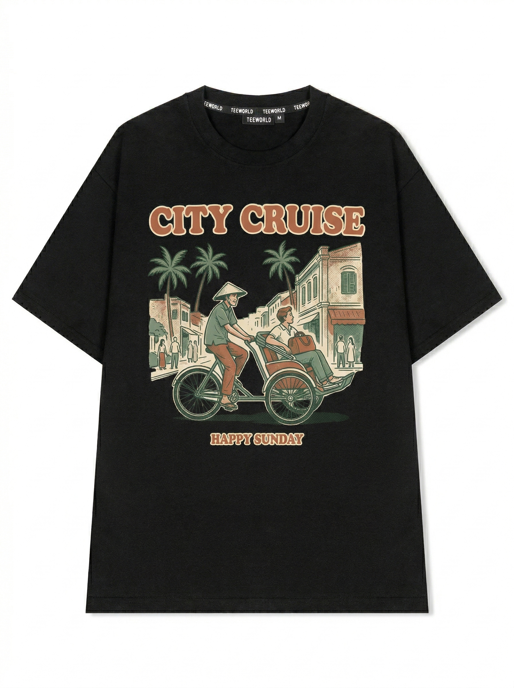 Wave Rider - Thiết kế độc quyền từ Happy Sunday. Chất liệu: Cotton Premium 250gsm, form oversize thoải mái. In ấn: Công nghệ in sắc nét, bền màu sau nhiều lần giặt. Phong cách: Đồ họa nghệ thuật, nổi bật.