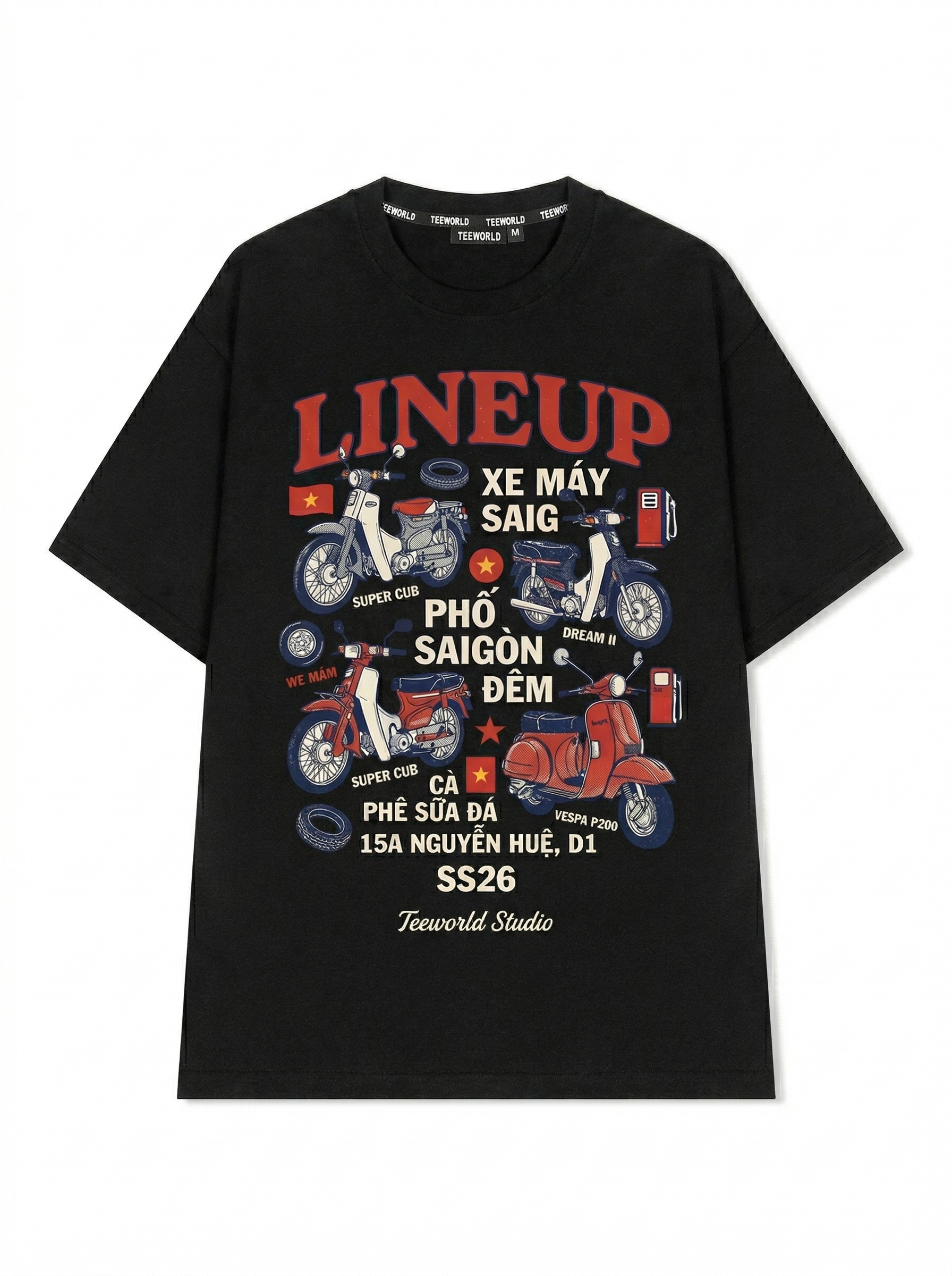 Xe Máy Đêm - Thiết kế độc quyền từ Teeworld. Chất liệu: Cotton Premium 250gsm, form oversize thoải mái. In ấn: Công nghệ in sắc nét, bền màu sau nhiều lần giặt. Phong cách: Streetwear hiện đại, dễ phối đồ.